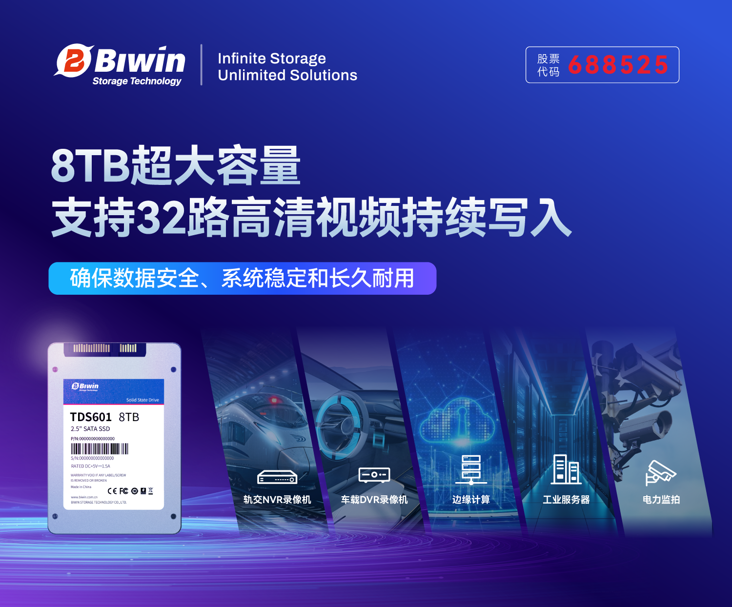 在智慧交通、智慧城市快速普及下,视频监控系统正朝着高清化、多路化和智能化方向加速演进,存储设备的性能、稳定性和可靠性已成为保障系统高效运行的关键因素。佰维存储正式推出全新一代工业级SSD产品——TDS600系列,系列产品以8TB超大容量、媲美企业级的稳态性能、全方位高可靠性设计和全国产化BOM为核心亮点,全面满足轨交、车载、电力、安防及边缘计算等关键领域的严苛需求。