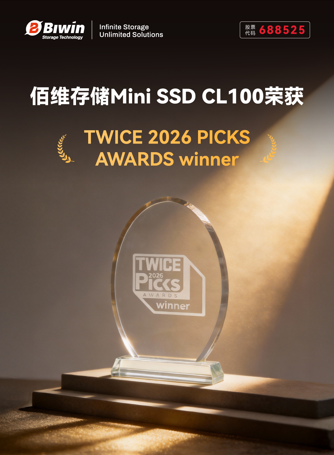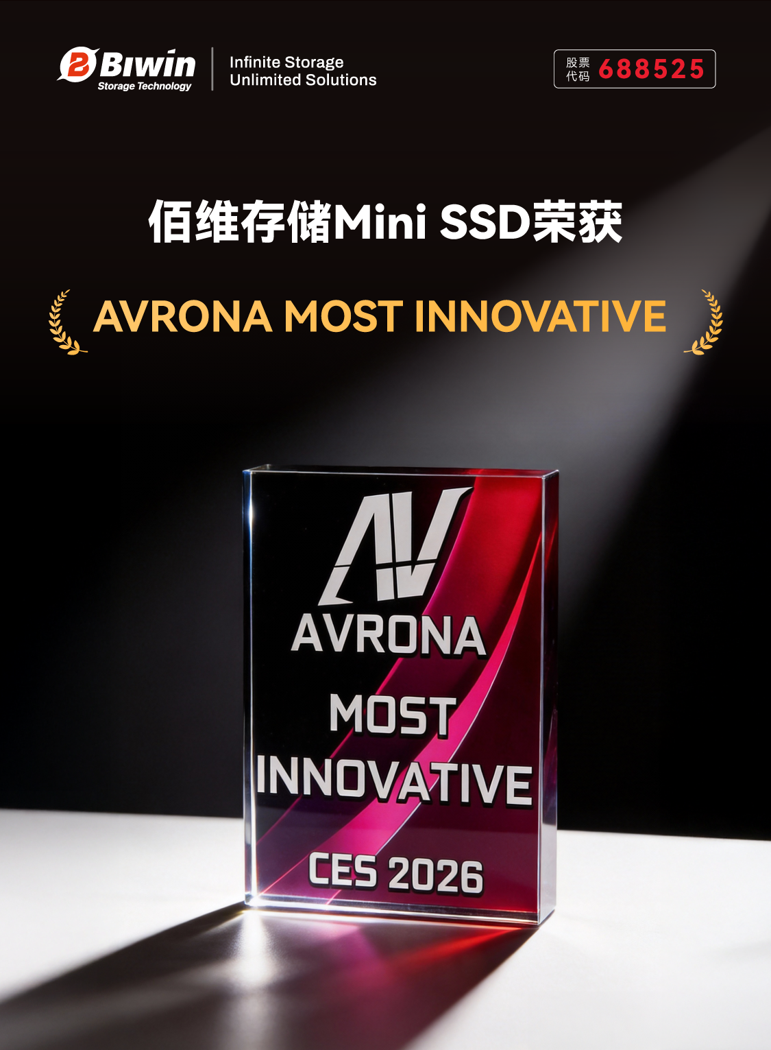 近日,佰维存储的创新产品 Mini SSD凭借突破性设计理念与技术实力,在 CES 2026 展会期间获得了 TWICE 2026 PICKS AWARDS winner(CES 2026 精选奖项),并同时斩获 AVRONA MOST INNOVATIVE(最佳创意奖)。这款 “小体积强性能” 的存储产品,既延续了佰维的技术创新基因,也契合了端侧 AI 的发展节奏。