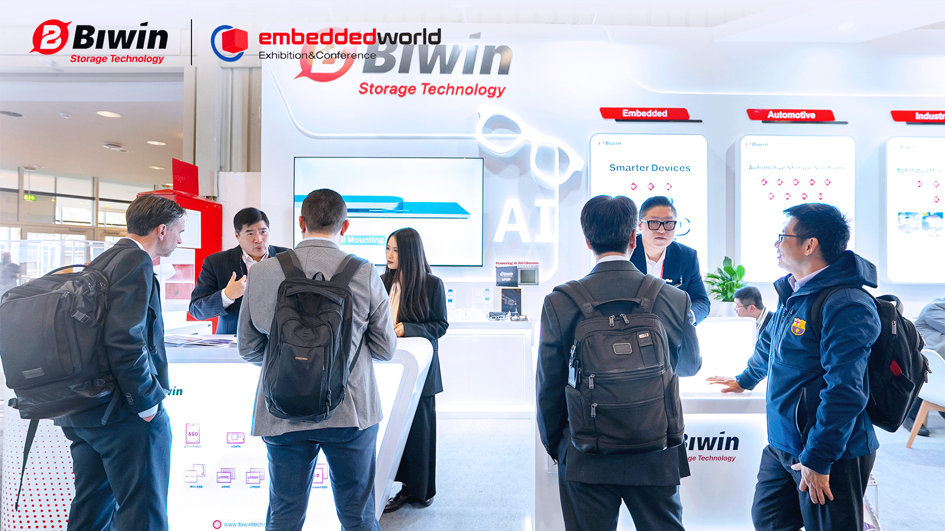佰维已建立覆盖AI端侧、嵌入式、消费级、工业车规级与企业级的全场景存储产品矩阵。此前在MWC 2026获得「Best-in-Show」奖项的Mini SSD,在此次展会中持续受到关注。该产品凭借小体积、高性能与模块化设计优势,重构终端存储性能极限与产品形态,旨在为AI PC等终端设备的轻量化升级提供存储支持。工车规领域,车规级TAE308系列eMMC搭载自研主控芯片,是智能座舱、自动驾驶系统的核心存储组件;工业宽温GEN3/GEN4 PCIe SSD、自研主控工业宽温eMMC等产品,专为严苛环境设计,以高耐久、大容量等特性,保障智能工厂、5G基站等场景7×24小时数据安全,筑牢工业终端规存储安全底座。